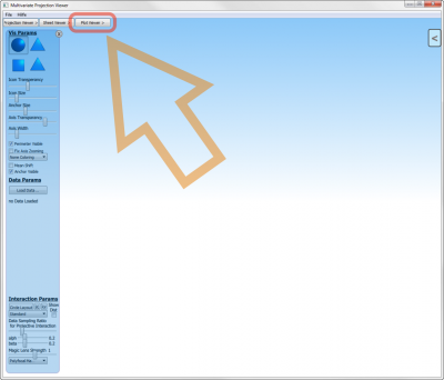 Fig: Laden Sie einen Datensatz mit dem gezeigten Button (siehe Pfeil). Ein Dateidialog erscheint, der Sie auffordert eine CSV-Datei zu öffnen